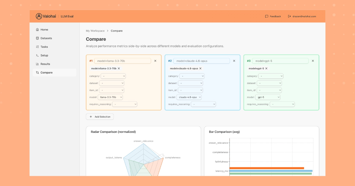 by Petteri Raatikainen | on March 03, 2026Introducing Valohai LLM, a purpose-built tool for running, tracking, and comparing LLM evaluations.